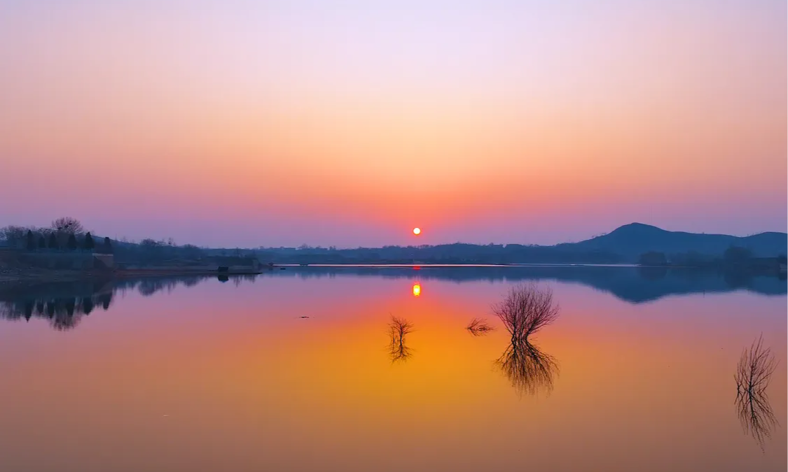 晚安·美麗河北丨石家莊行唐:霞光傾灑孔雀湖面