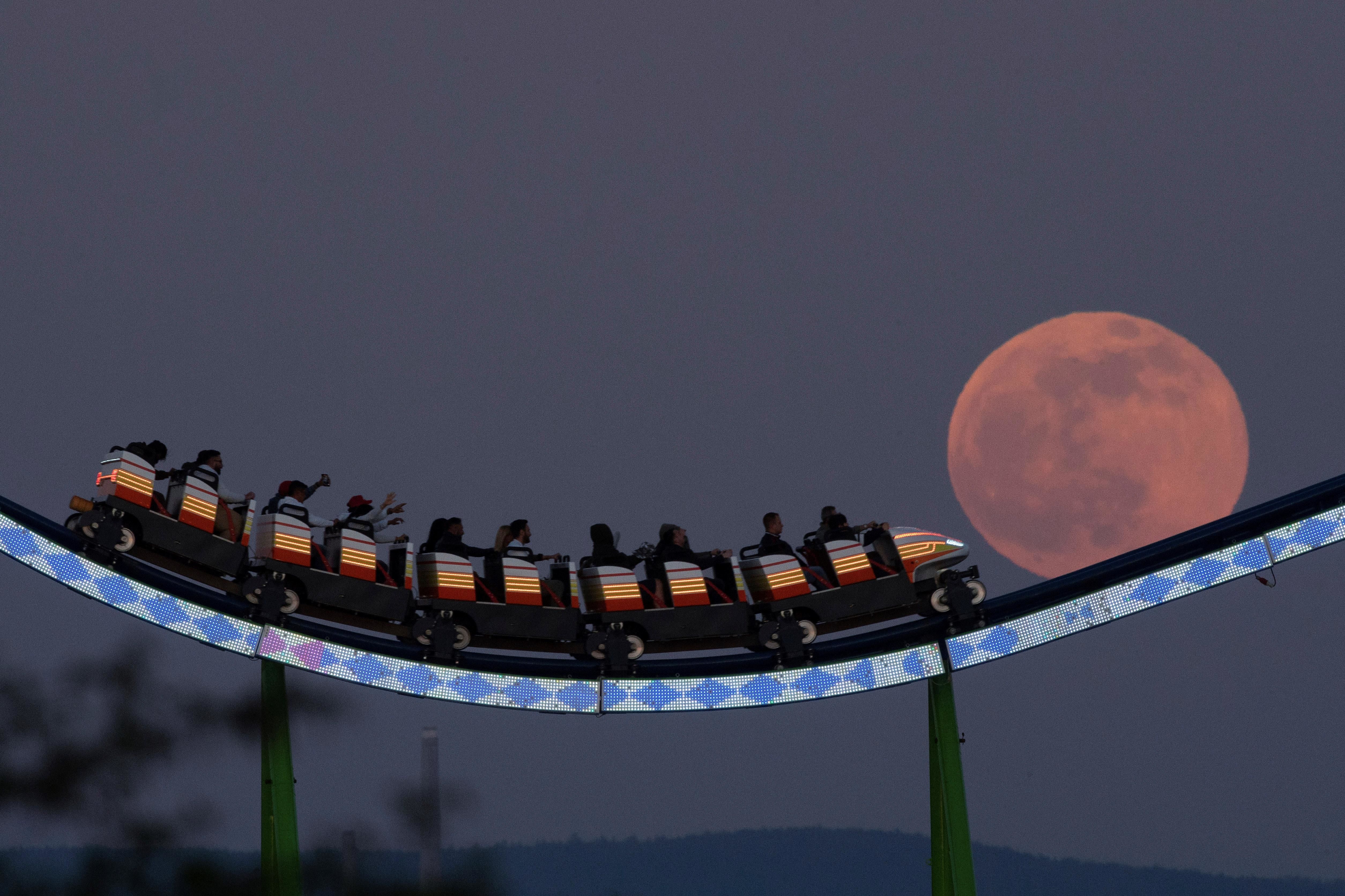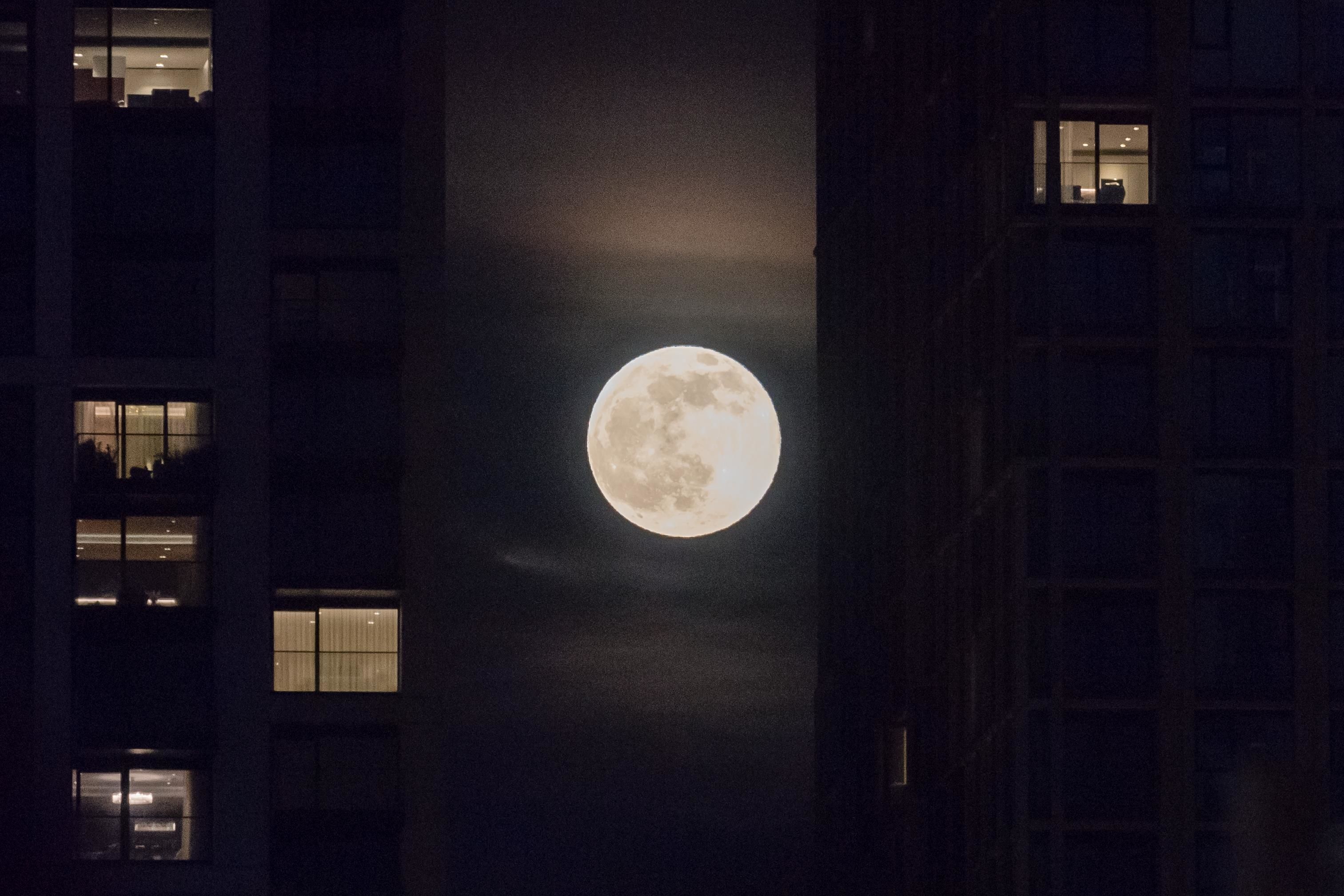 當(dāng)?shù)貢r(shí)間4月16日,德國(guó)法蘭克福夜空滿月升起。