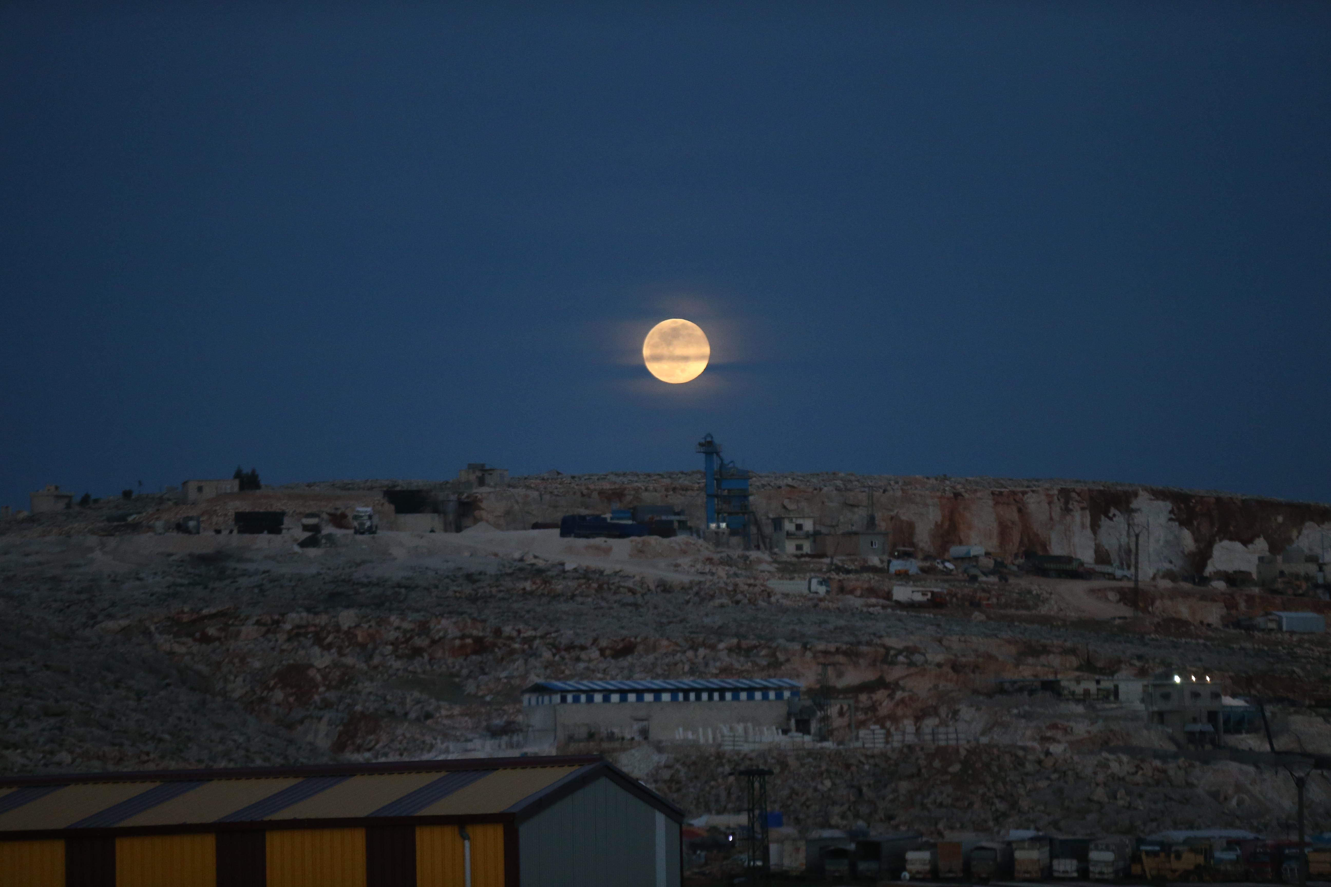 當(dāng)?shù)貢r(shí)間4月16日,敘利亞伊德利卜夜空滿月升起。