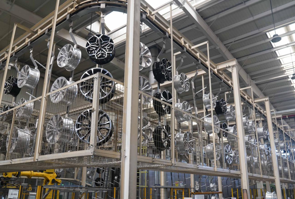 ↑信越智能裝備有限公司的車輪噴涂生產線。王繼軍 攝