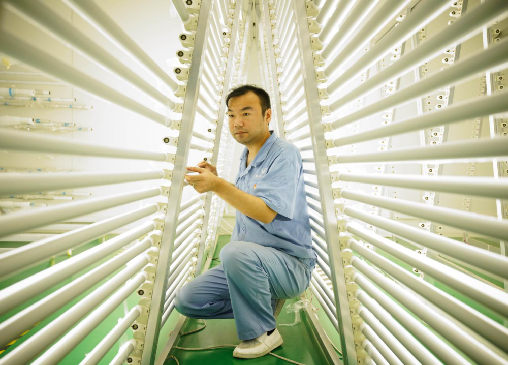 ↑鵬遠光電子科技有限公司的技術人員在安裝產品。王繼軍 攝