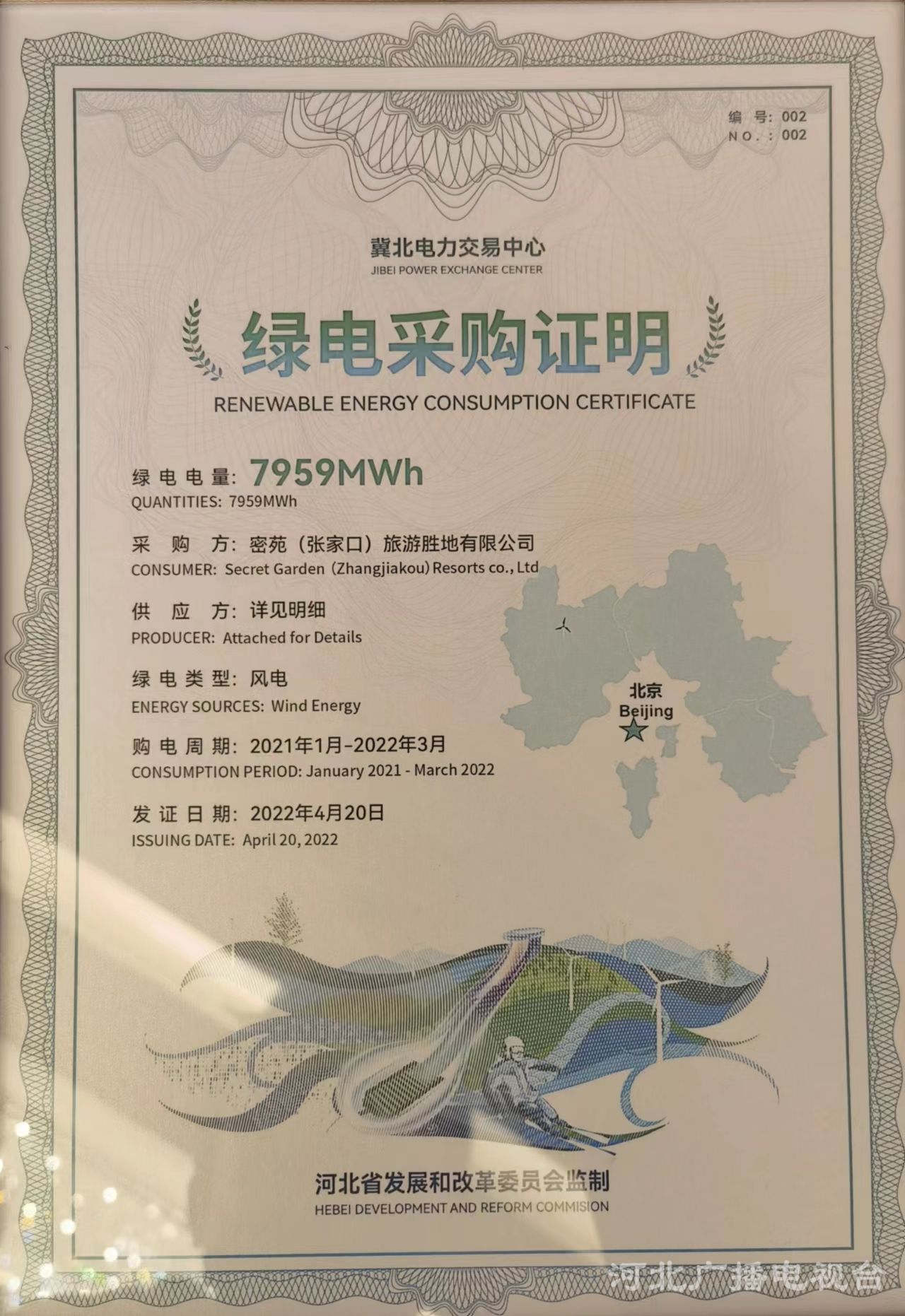 截止目前,2022年北京冬奧會冬殘奧會張家口賽區已完成冬奧綠電交易服務保障工作。按照省發改委《張家口零碳冬奧綠色電力交易實施方案》有關要求,省發改委對張家口賽區冬奧場館綠色電力采購情況給與認證。