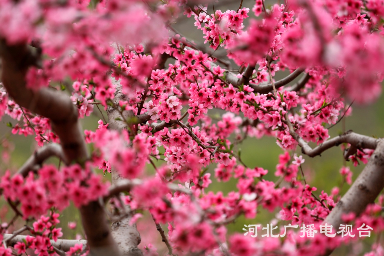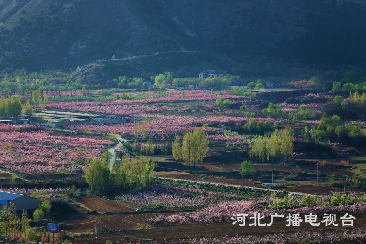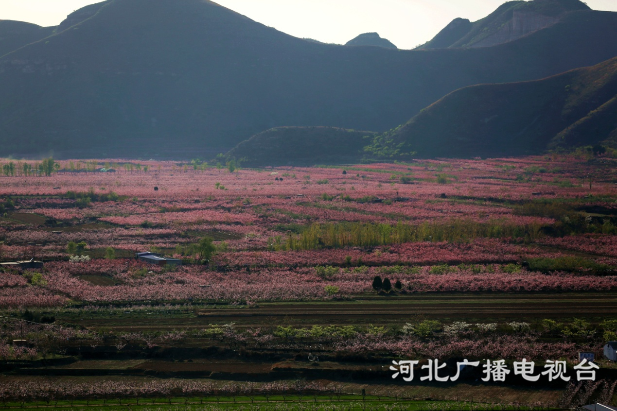 冀時客戶端報道(河北臺 王建設(shè) 魏海超 張存海 郭煒 周鵬 豐潤臺劉華建)人間最美四月天,唐山市豐潤區(qū)左家塢鎮(zhèn)萬畝桃園正如霞似雪。遠(yuǎn)處的山帶著點點綠,在延綿山谷的懷抱中,桃花和著春風(fēng)盡情怒放,顯妖嬈,顯綽約,桃花灼灼,片片芳菲,意氣風(fēng)發(fā)。淡綠逐花粉,畫動還復(fù)真。