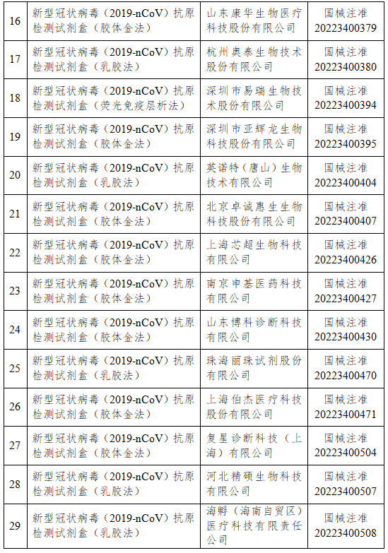 據國家藥監局網站消息,4月20日,國家藥監局再次審查批準2個新冠病毒抗原檢測試劑產品。至此,國家藥監局已批準29個新冠病毒抗原檢測試劑產品。