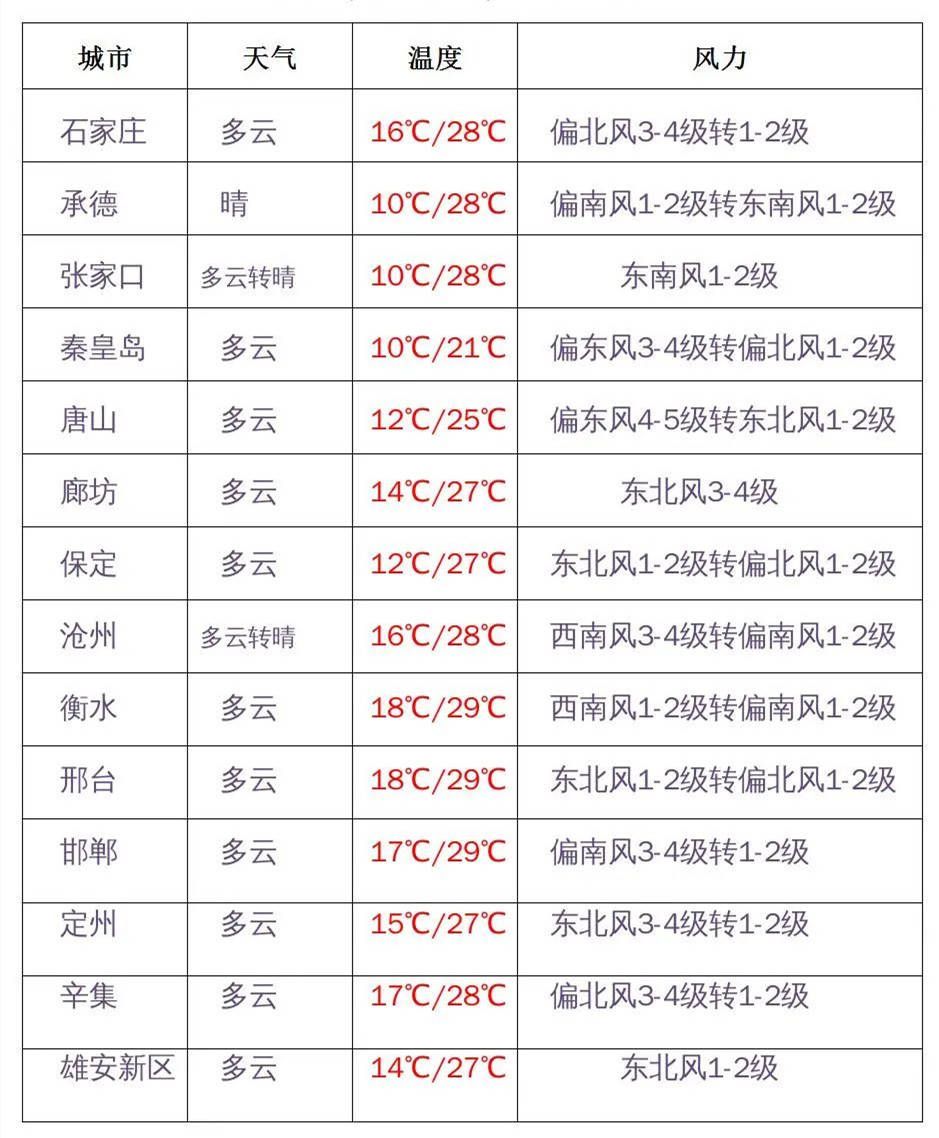 (部分預(yù)報(bào)來源:河北天氣)