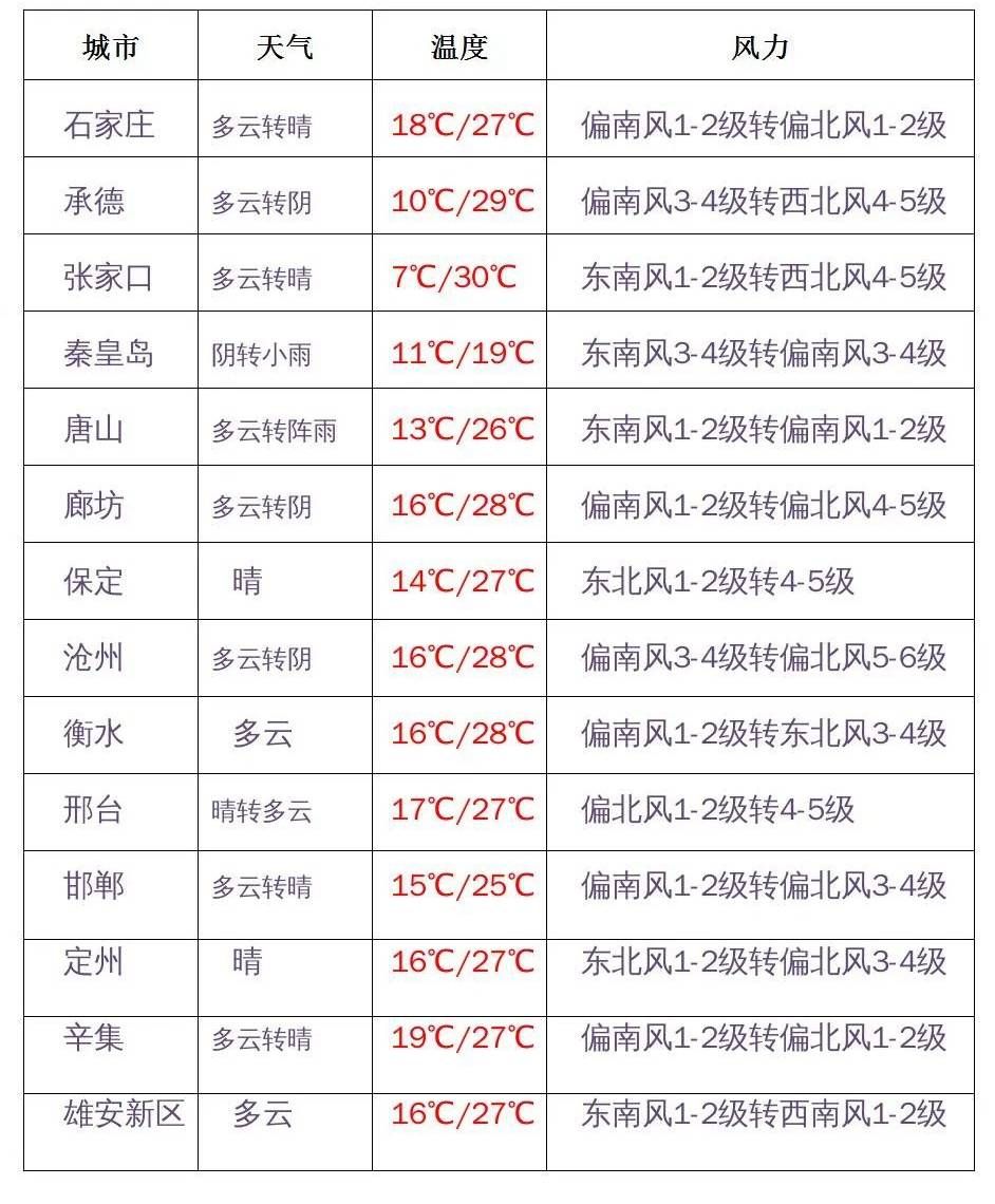 (部分預報來源:河北天氣)