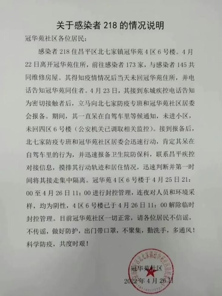 近日,北京市“感染者218”