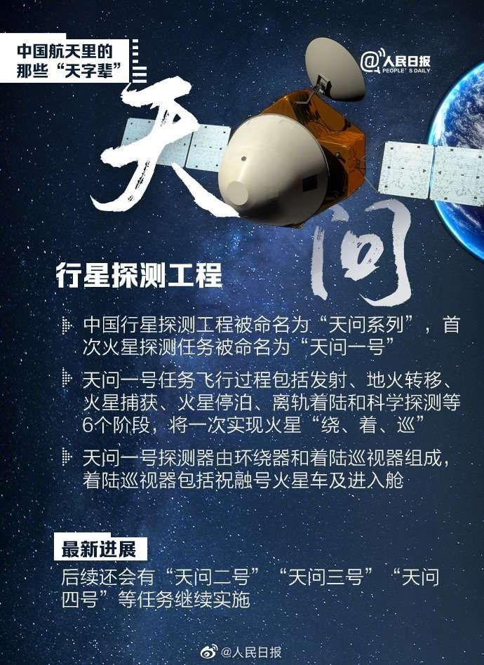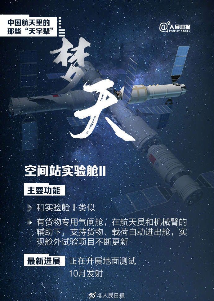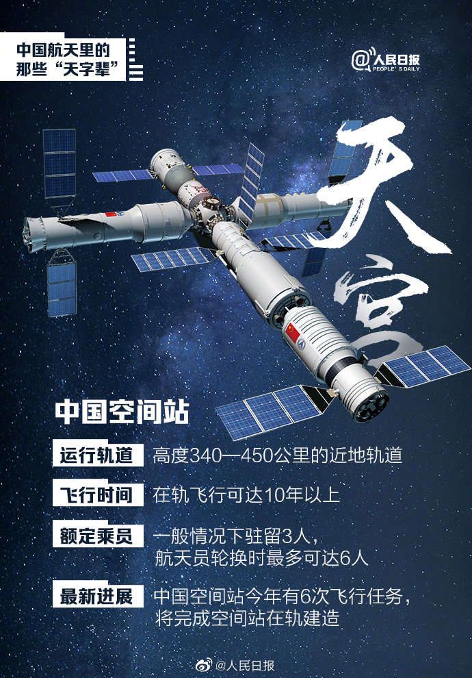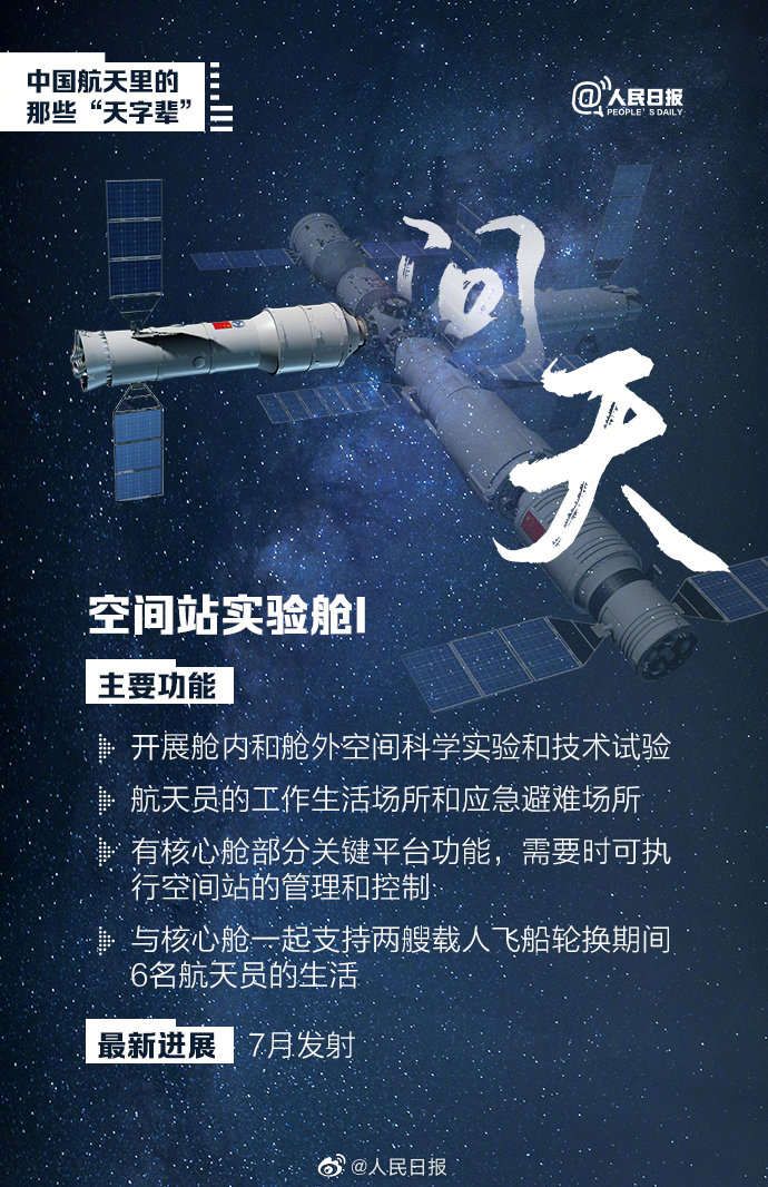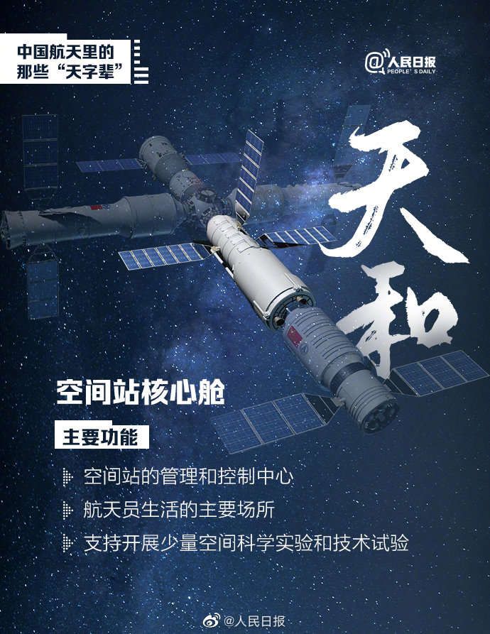 一年前的今天,中國空間站首發成員天和核心艙發射升空,我國空間站建設大幕開啟。除“天和”外,中國空間站“天宮”、行星探測工程“天問”、貨運飛船“天舟”、實驗艙“夢天”“問天”......中國航天里的“天字輩”,你能分清嗎?