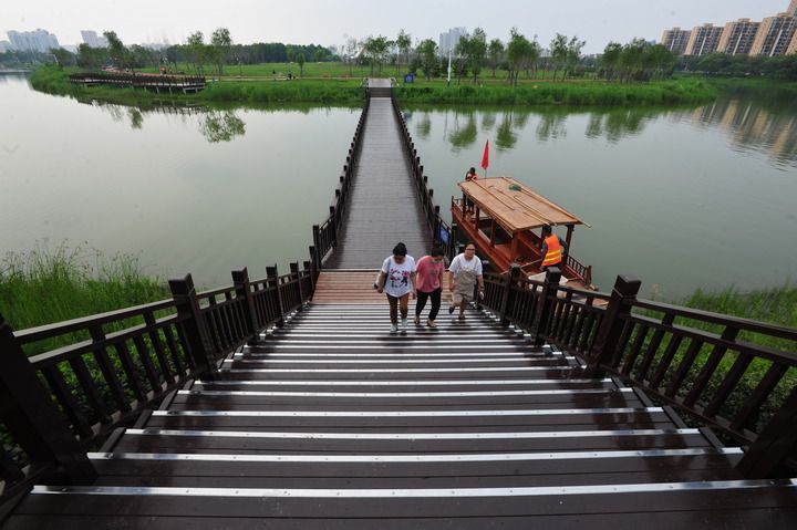 滄州市大運(yùn)河生態(tài)修復(fù)展示區(qū)景色(2021年7月6日攝)。