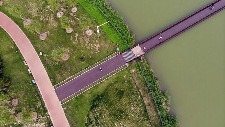 與此同時(shí),滄州市全域打造“藍(lán)綠交織、林水相依”的運(yùn)河生態(tài),在運(yùn)河沿線可視范圍內(nèi)開展綠化提升,能綠則綠、應(yīng)綠盡綠,運(yùn)河流經(jīng)的8縣(市、區(qū))308公里堤頂路全面實(shí)現(xiàn)硬化。蜿蜒運(yùn)河寬路依,綠樹紅花微風(fēng)習(xí),人們?nèi)宄扇海蝌T行,或散步,聽水聲,賞美景。運(yùn)河兩岸,到處是河與人和諧共生的圖景。
