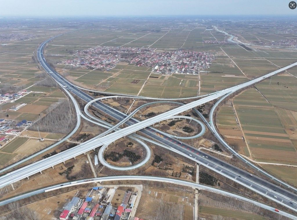 1月19日拍攝的京港澳高速跨曲港高速樞紐互通(無人機照片)。新華社發