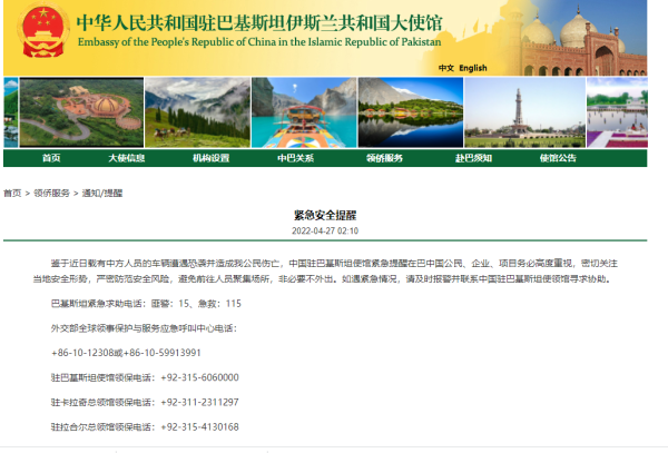 中國(guó)駐巴基斯坦大使館2022-04-27 07:46:04