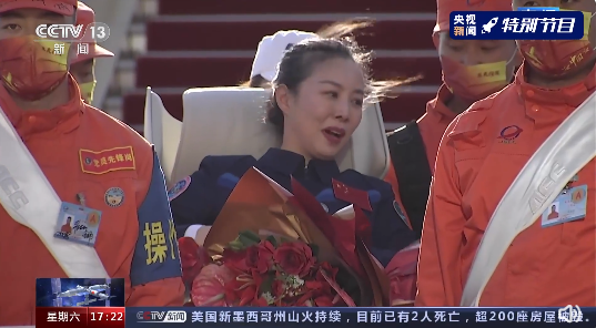 和女兒擁抱完,王亞平立刻掏出“星星”,笑著遞給女兒。