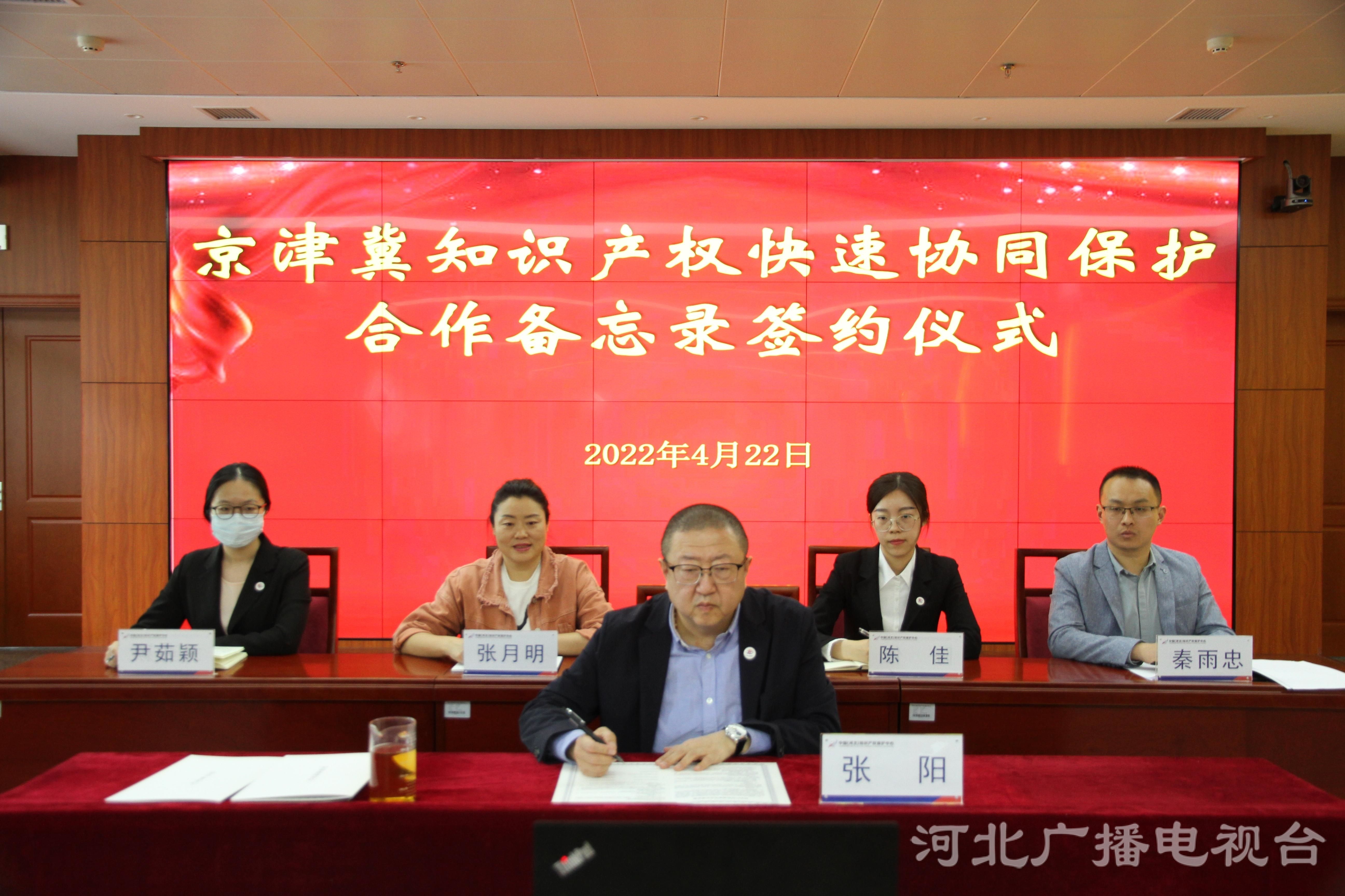 冀時客戶端報道(河北臺劉知府 姜哲 通訊員姚寧 張月明)4月22日下午,中國(河北)知識產權保護中心在線上參加京津冀知識產權快速協同保護合作備忘錄簽約儀式。